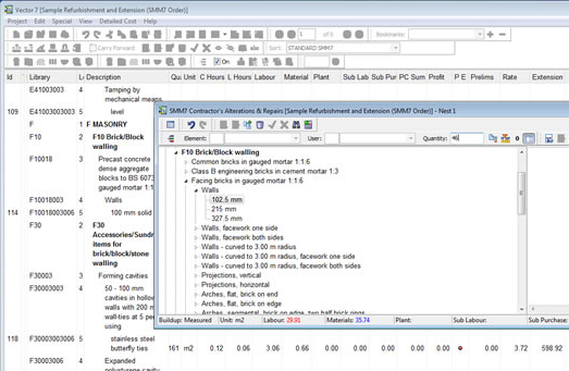 Every working day hundreds of surveyors are using Vector to create bills of quantities, cost plans, and detailed building estimates for their clients of every conceivable kind. The program is a thoroughly modern bill of quantities program with drag and drop, unlimited undo and redo of every action you take, and all the other features you would expect in the best modern windows programs.