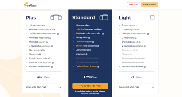 Inflow Inventory offers three plans, each one designed for different business requirements. If this is your first time using an inventory management solution, we recommend that you try the 14-days trial version without having to enter any payment information.