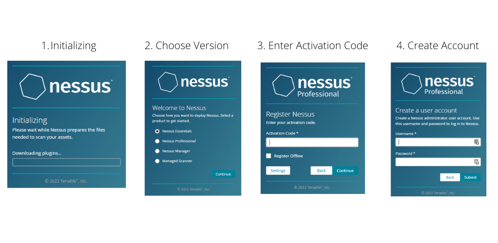The first initializing step involves downloading the plugins required by Nessus to work.