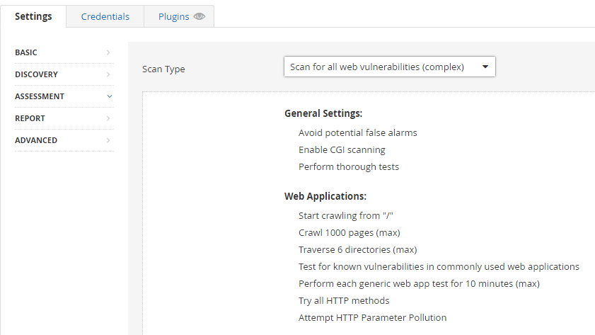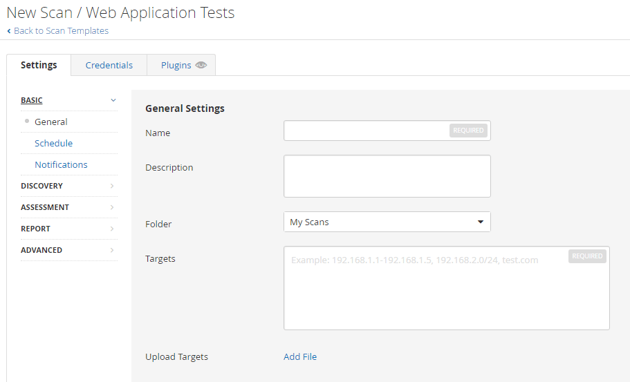 • Advanced Dynamic Scan – Configure a dynamic plugin scan without recommendations.