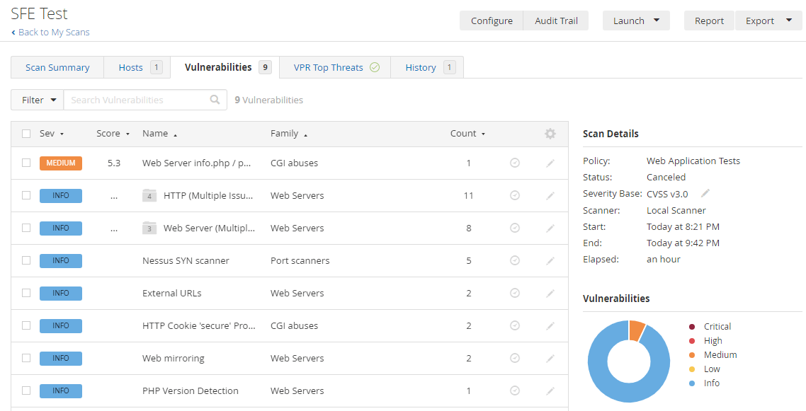 I’m glad that Nessus found a vulnerability where I left a PHP file containing the output of phpinfo() in there.